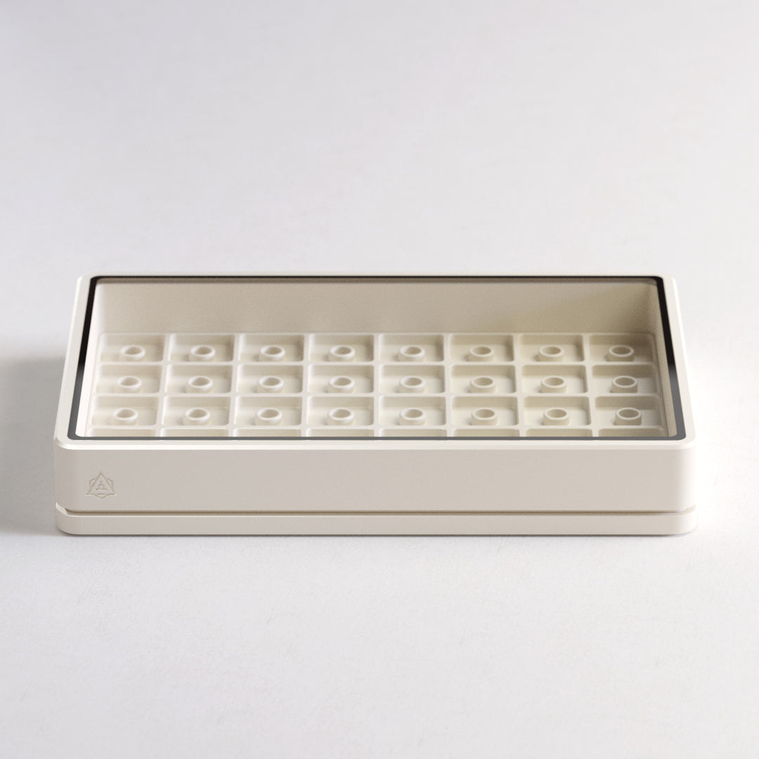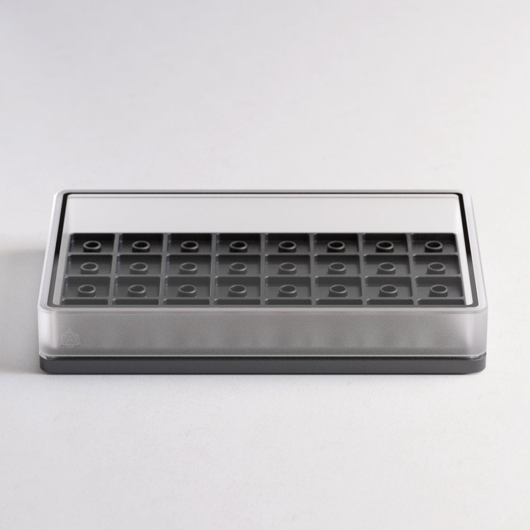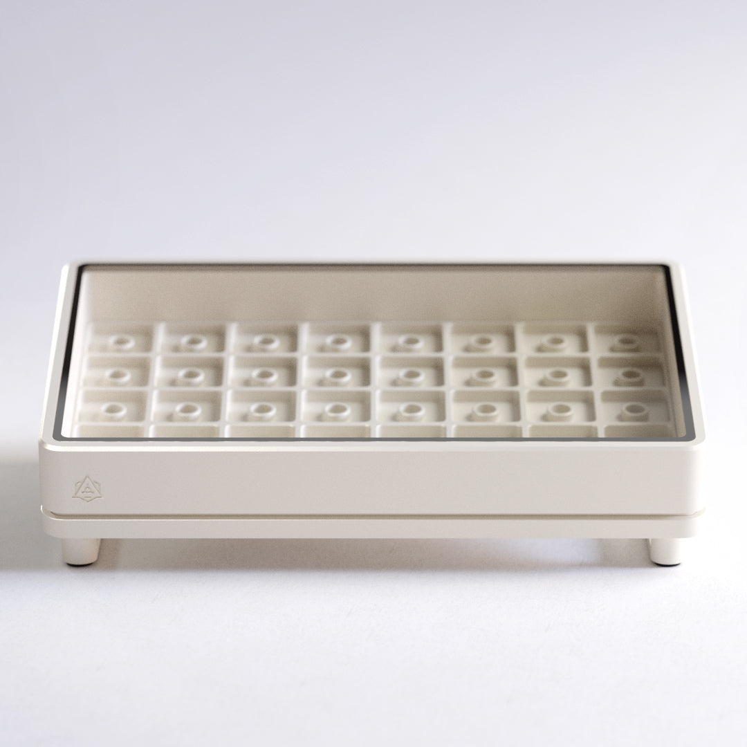 Experience the perfect blend of form and function with Chronos; our latest artisan case that seamlessly combines a refined design with enhanced versatility. Crafted with an unwavering commitment to minimalistic aesthetics and obsessive attention to detail, the Chronos is not just a case; it's a statement piece that elevates your workspace. Chronos allows you to display 40 of your most prized artisan keycaps.