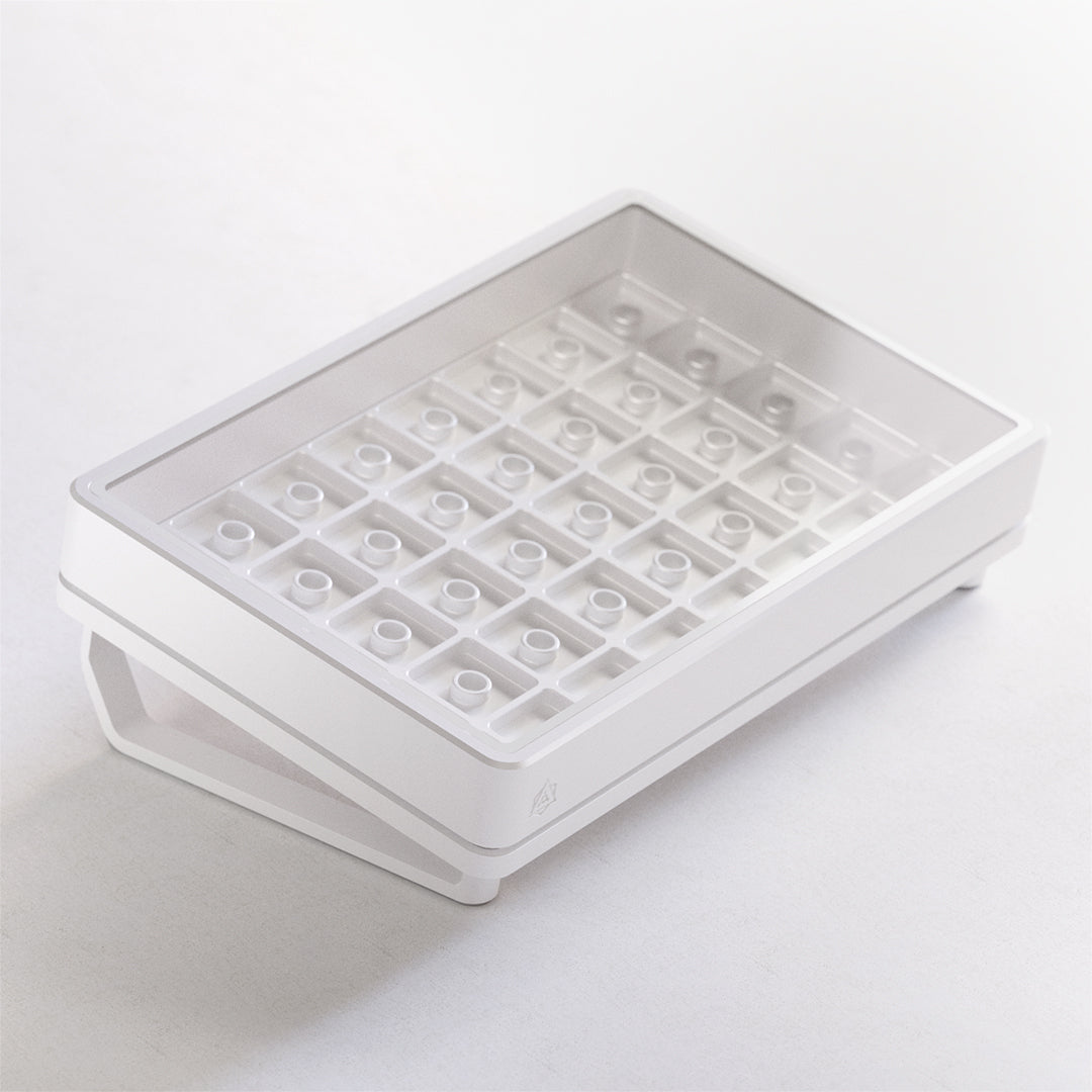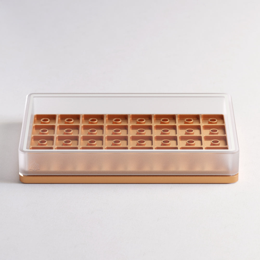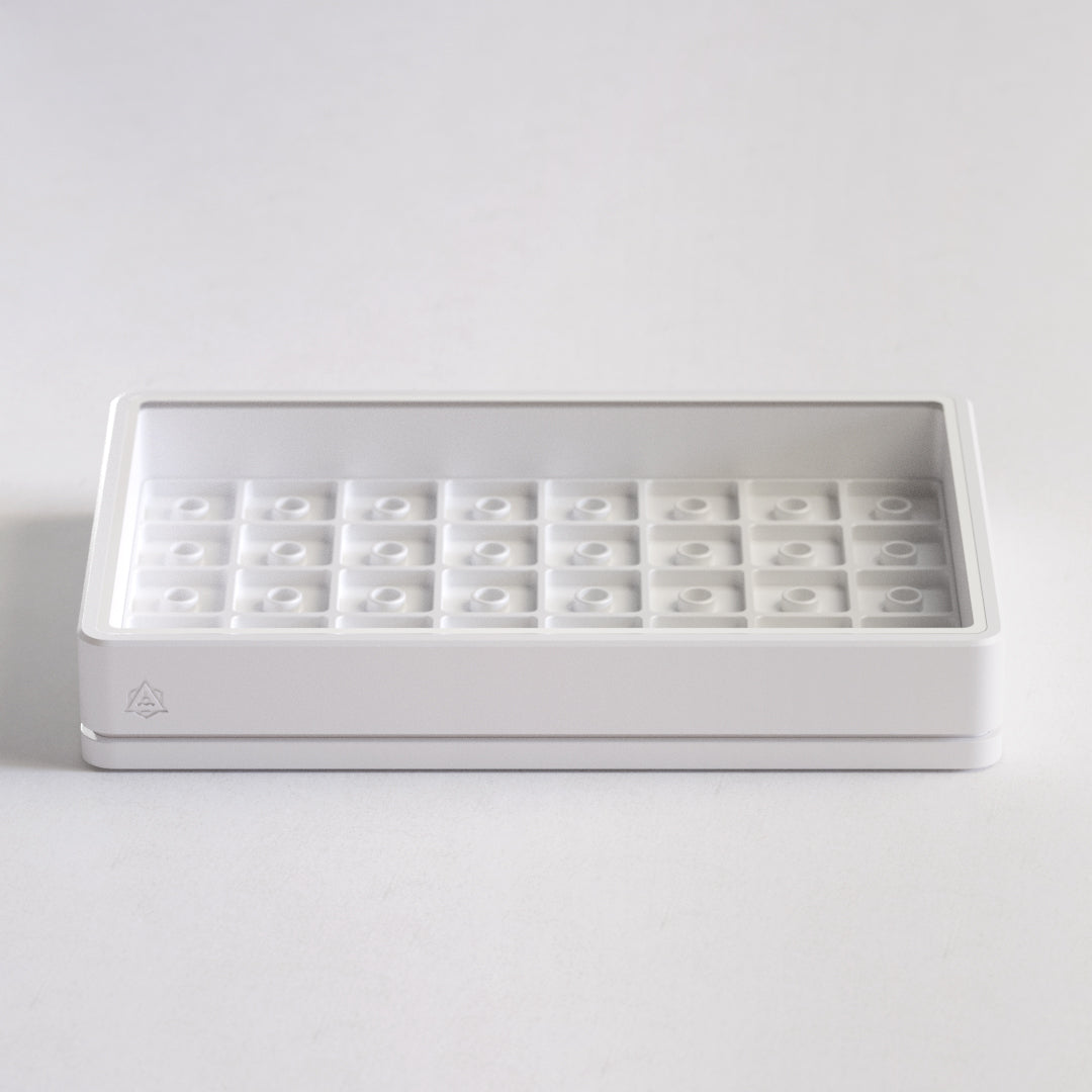 Experience the perfect blend of form and function with Chronos; our latest artisan case that seamlessly combines a refined design with enhanced versatility. Crafted with an unwavering commitment to minimalistic aesthetics and obsessive attention to detail, the Chronos is not just a case; it's a statement piece that elevates your workspace. Chronos allows you to display 40 of your most prized artisan keycaps.